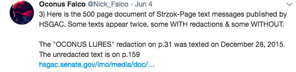 On Monday the Senate released 500 pages of documents that contain among other things un-redacted texts between disgraced FBI paramours Peter Strzok and Lisa Page that the FBI had previously released. The difference is that the FBI redacted certain words in these texts using national security as the excuse for the redactions. We now know the FBI lied about said reasoning.